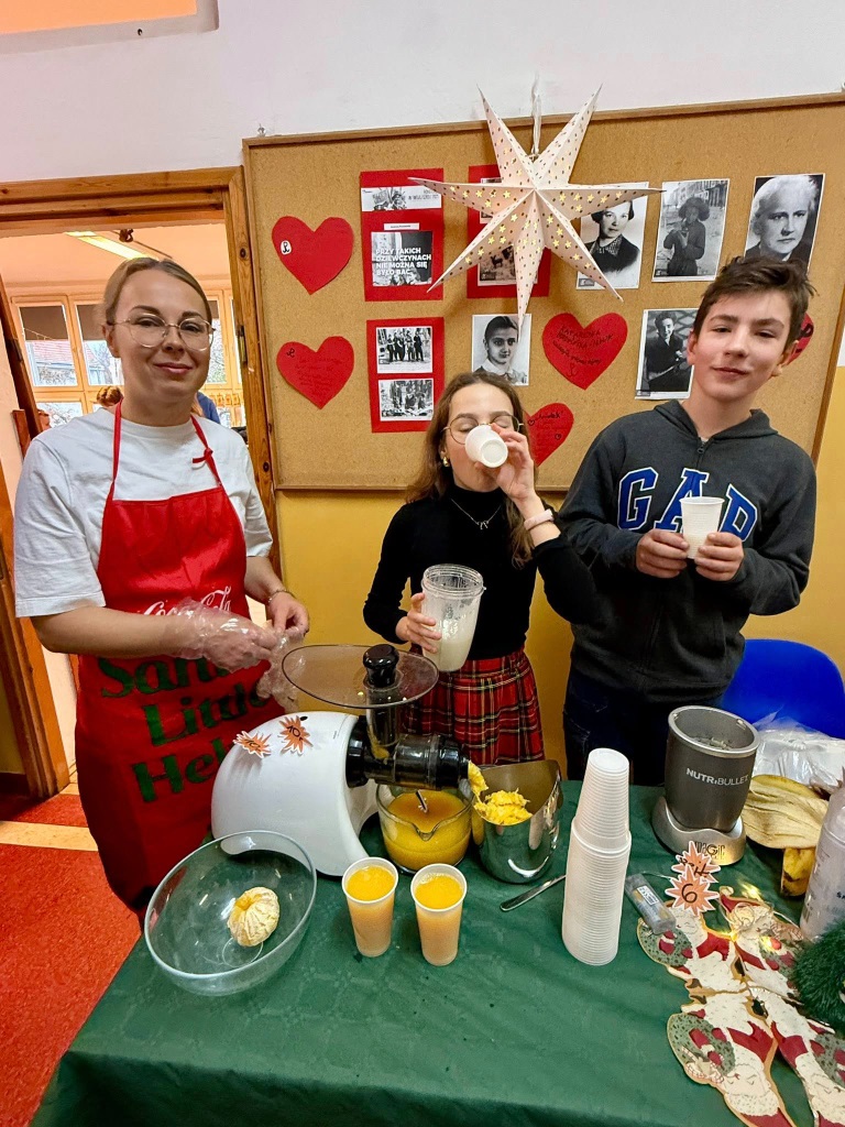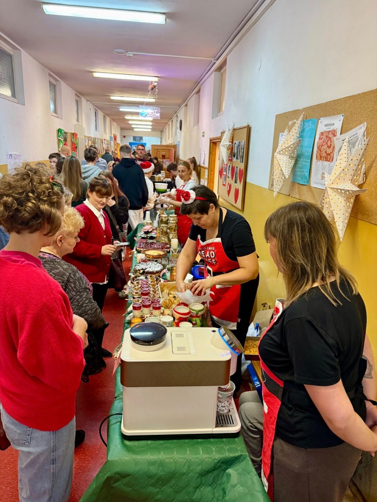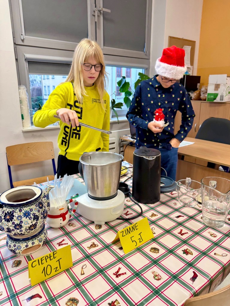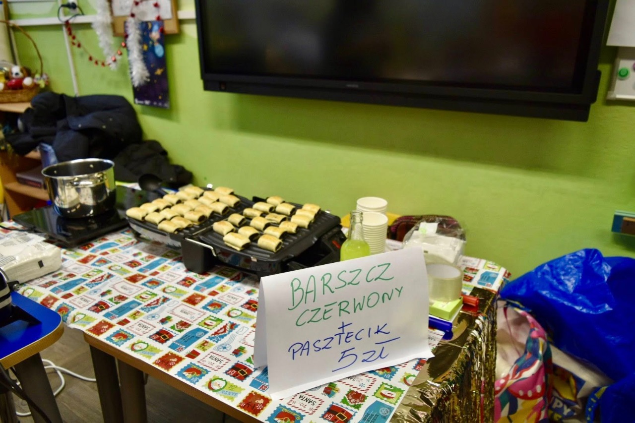 W szkolnej kuchni można było skosztować ciepłych dań na miejscu lub zabrać je ze sobą do domu — m.in. pierożków, bigosu i rozgrzewającej zupy. Poszczególne klasy przygotowały swoje stoiska z przekąskami: frytkami, hot dogami, popcornem, pasztecikami, galaretkami, ciastami, słodkościami, watą cukrową oraz świeżo wyciskanymi sokami i wieloma innymi pysznościami.