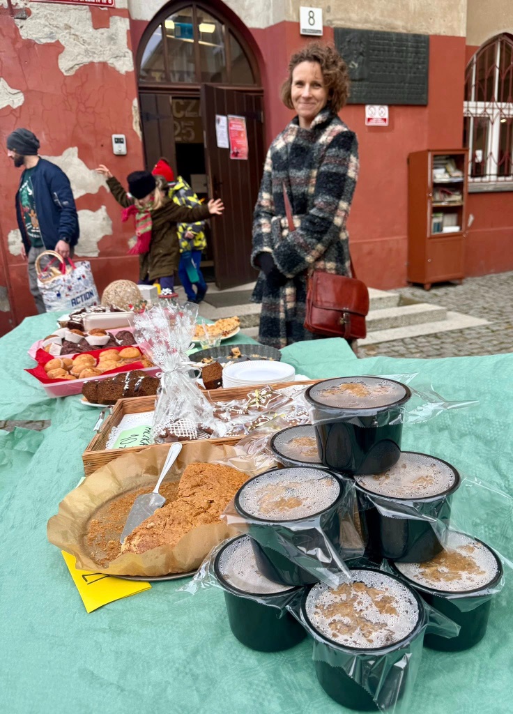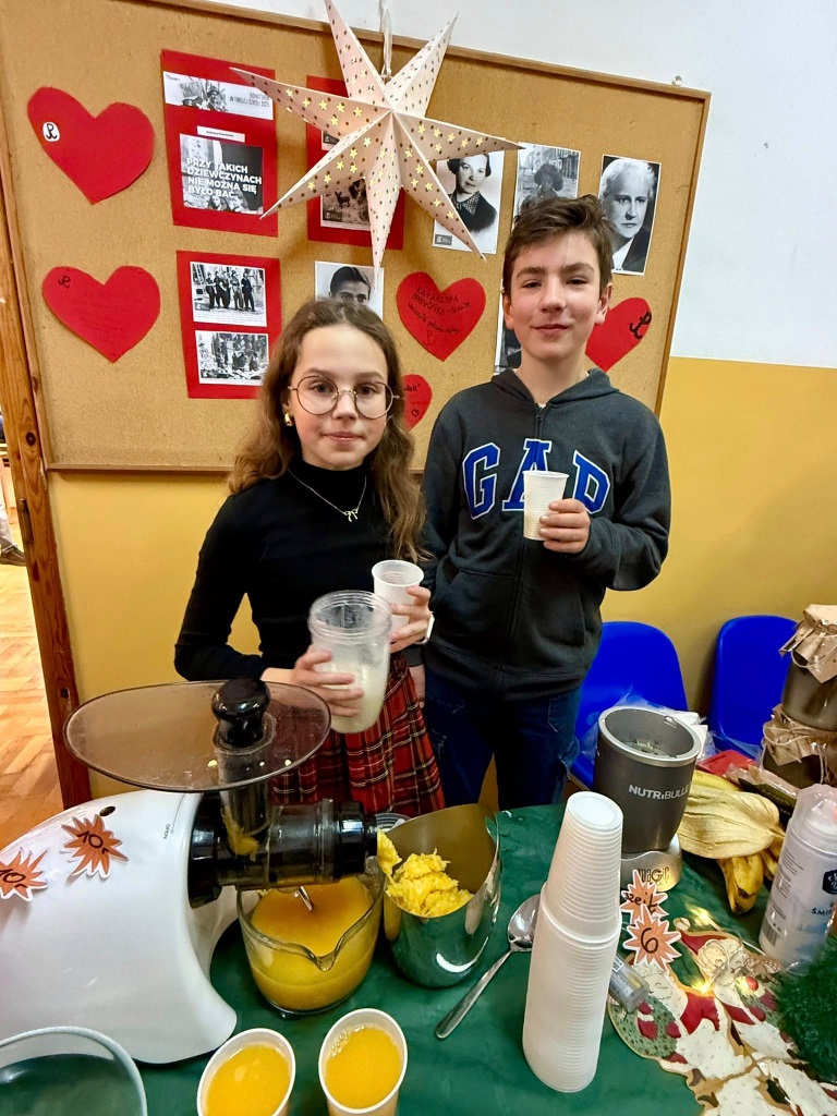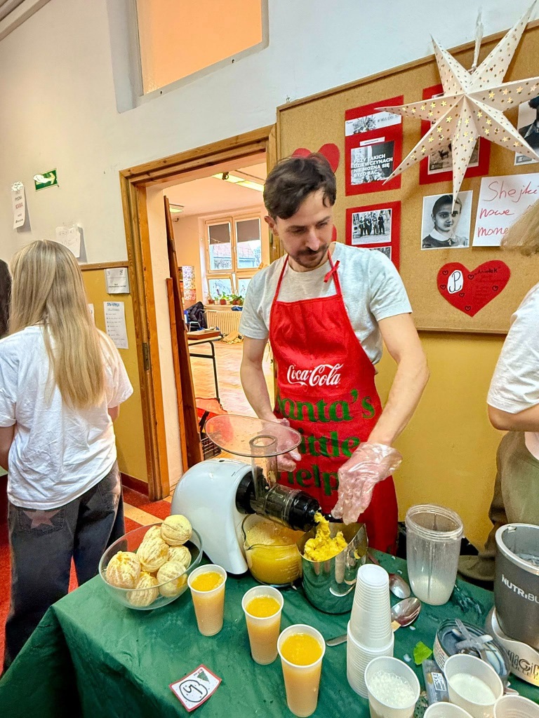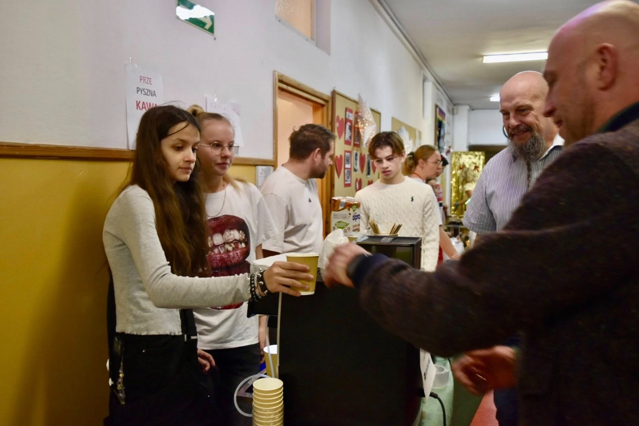 W szkolnej kuchni można było skosztować ciepłych dań na miejscu lub zabrać je ze sobą do domu — m.in. pierożków, bigosu i rozgrzewającej zupy. Poszczególne klasy przygotowały swoje stoiska z przekąskami: frytkami, hot dogami, popcornem, pasztecikami, galaretkami, ciastami, słodkościami, watą cukrową oraz świeżo wyciskanymi sokami i wieloma innymi pysznościami.