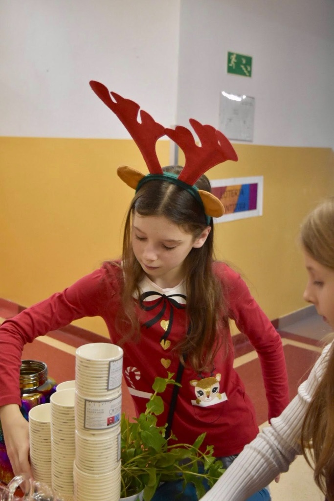 Dużym zainteresowaniem cieszyły się również klasowe kiermasze świąteczne z pięknymi ozdobami na choinkę, dekoracjami na stół i stroikami wykonanymi przez uczniów i rodziców.