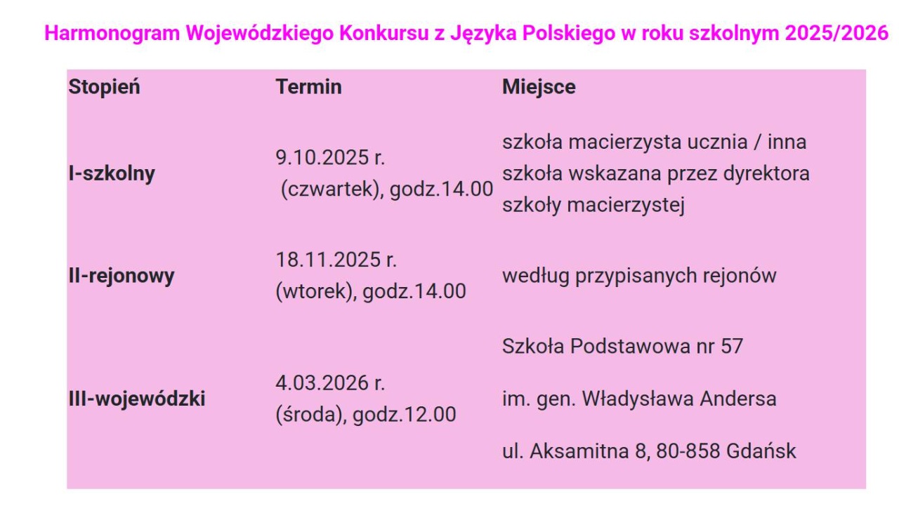 Wojewódzki Konkurs z Języka Polskiego dla uczniów klas IV-VIII szkół podstawowych województwa pomorskiego w roku szkolnym 2025/2026